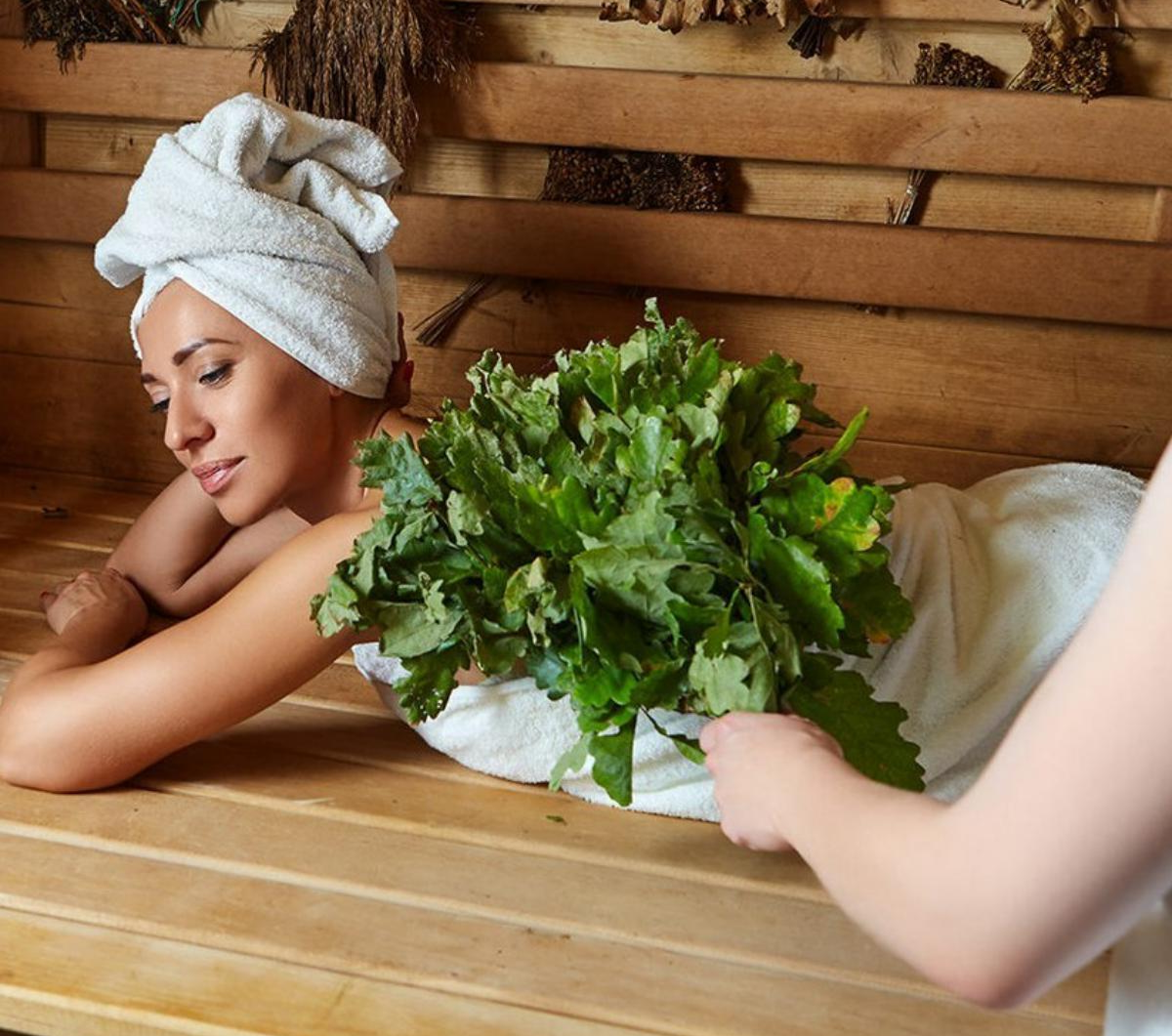 Второй заход: лёгкое бархатное парение берёзовым веником с обеих сторон.